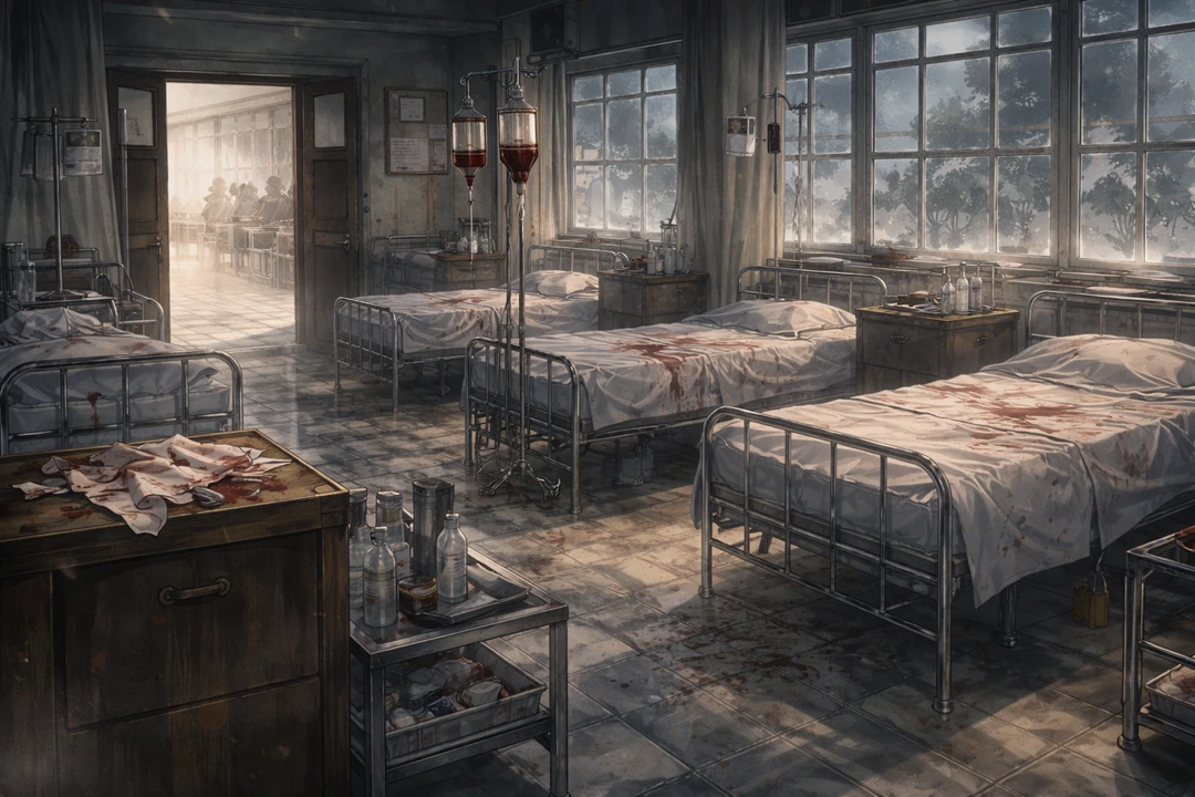 拳を握りしめ、ベッド脇の鉄柵を強く掴む。 利き手だぞ。戦場で、それがどれだけ致命的かわかってるはずだ