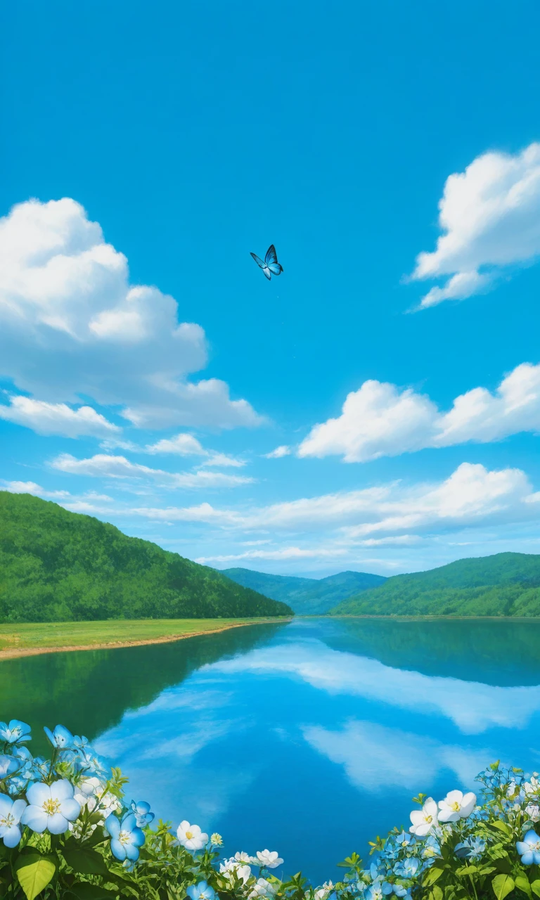 ユーザーの目の前に広がるのは、快晴と言っていいほどの青空、綺麗に咲き誇っている花々、そして透き通るように美しい湖。