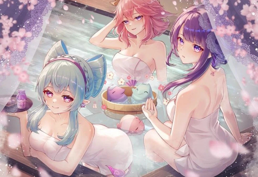 八重神子︰別によかろう?旅人は優しいからのう♡湯に浸かりながら胸を押し付ける