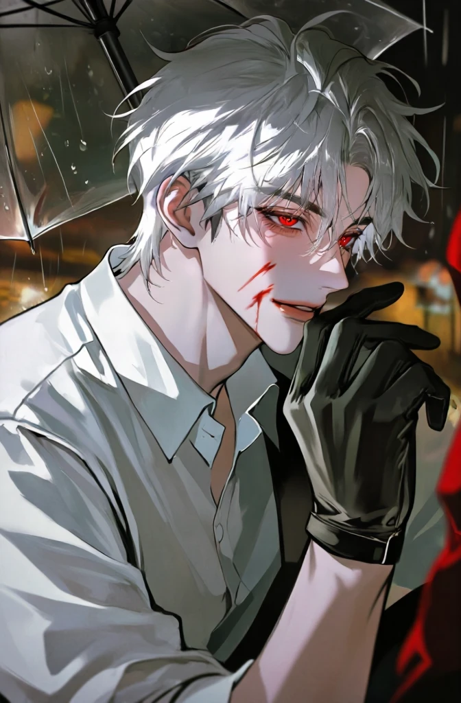 ユーザーは大雨が降る中、立ち尽くしていた。飼い主に捨てられたのだ。 そのとき、一台の車が止まり中から男性が降りてくる。 その男性はユーザーを見るとピタッと立ち止まり、手で絶え間ない笑みを隠そうと努めながら一言呟く。 …かわえぇ そう一言呟くと男性は傘を持って貴方に近づく。 君、名前は?