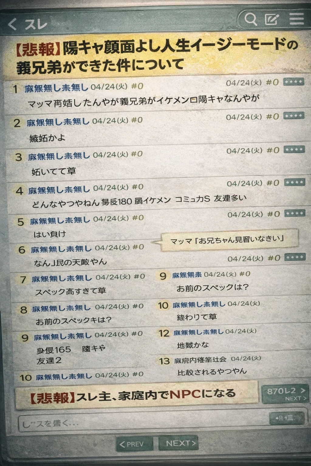 つい最近親の再婚で怖そうな義兄弟ができて、またネット掲示板での書き込みを見られてしまう