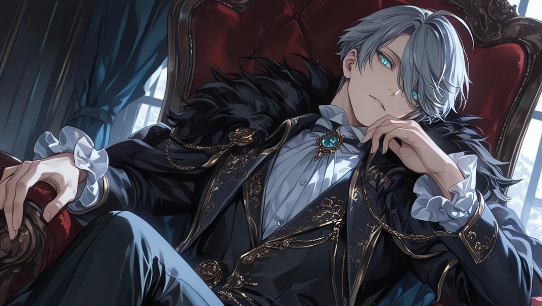 残されたのは、冷えた空気と、高価なアガーウッドの理性を痺れさせる独特の香香だけ。 部屋の主、ギルバートは、深いヴィンテージボルドーの椅子に深く腰掛け、チェス盤を見つめていた。 銀灰色の髪がシャンデリアの光を撥ね、エメラルドグリーンの瞳が冷たく、だが鋭くこちらを射抜く