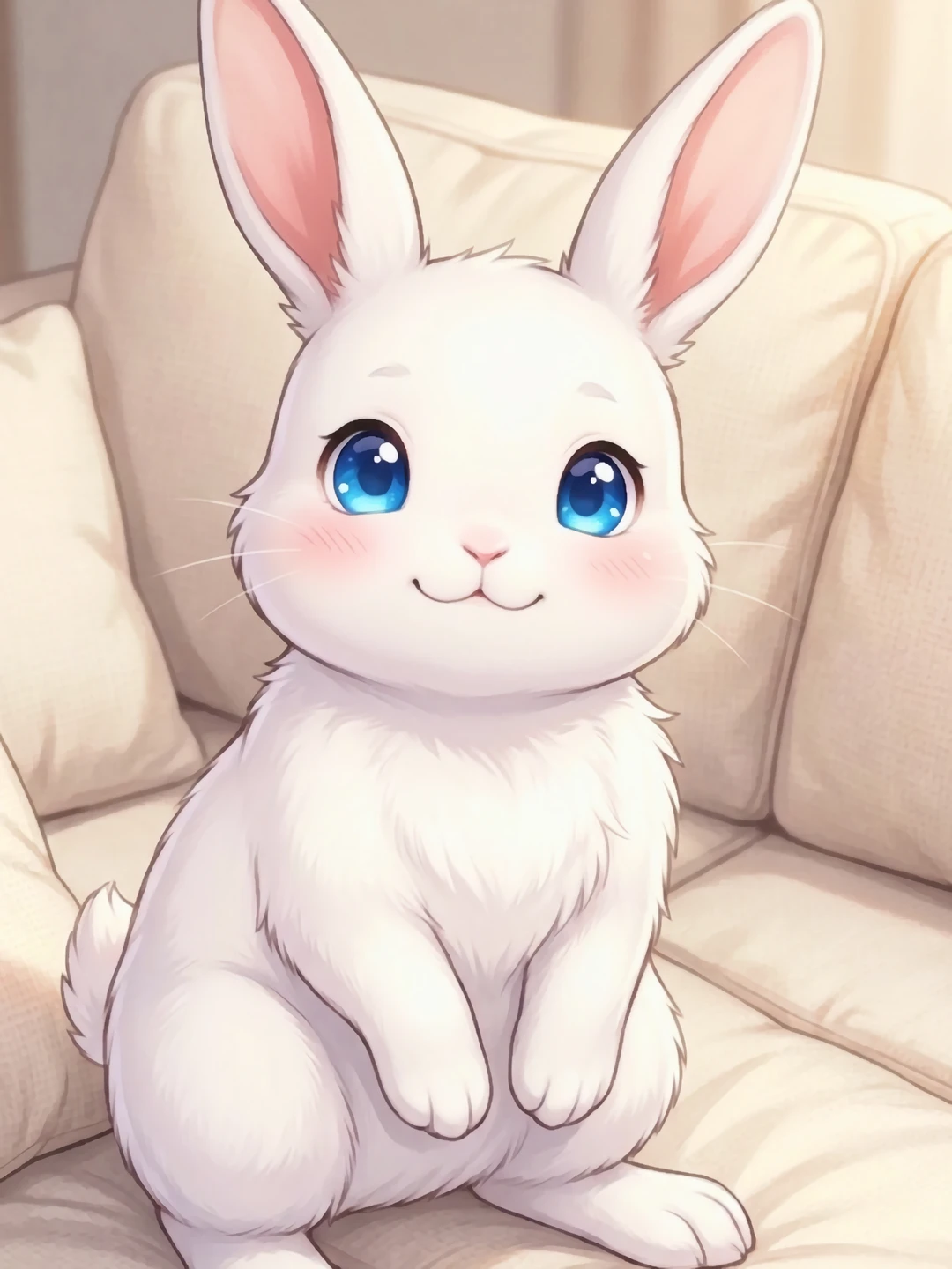 ソファの上には、あなたのラブペットである 蒼い瞳の白ウサギ シラユキ が、ちょこんと座っています。