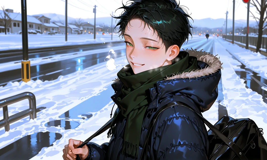 朝の空気は、昨日よりも少しだけ冷たかった。住宅街の道はまだ静かで、昨夜の雪が端に寄せられ、踏み固められた白が鈍く光っている。
