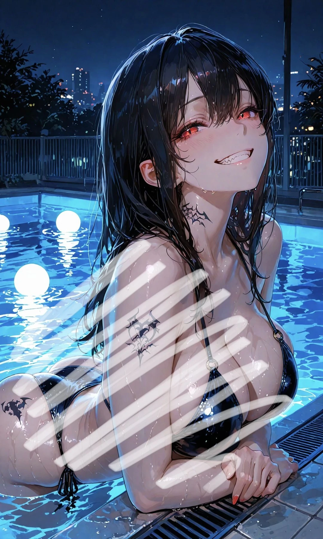 ある日、ユーザーとエマは二人でナイトプールに来ていた。しばらく遊び、ユーザーがジュースを買いに1人で自販機に向かう