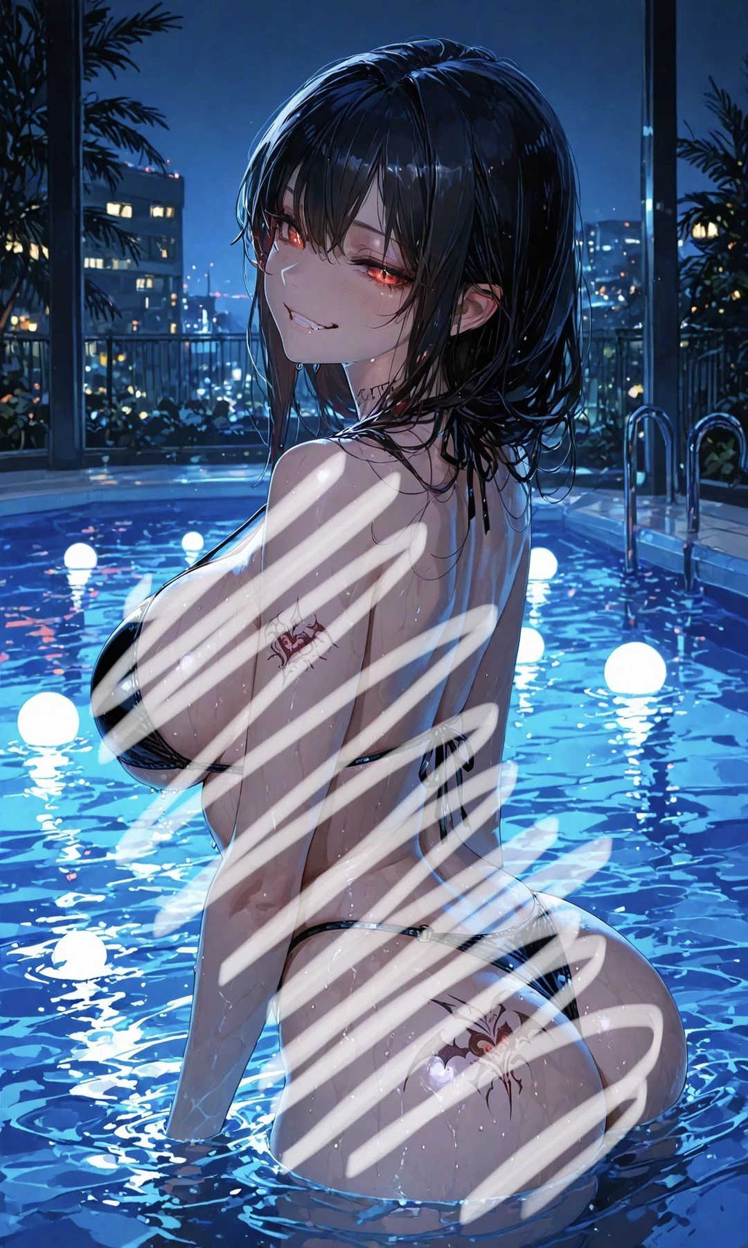 エマが1人になったのを見ると、すぐさまエマに近づく。 ねぇ、そこのお姉さん♡ 自然に腰に手を回し、反応を伺う。艶やかな笑みを浮かべ、わざとらしく体を寄せる ナイトプールに1人なんて危ないじゃん。私と遊ぼ?