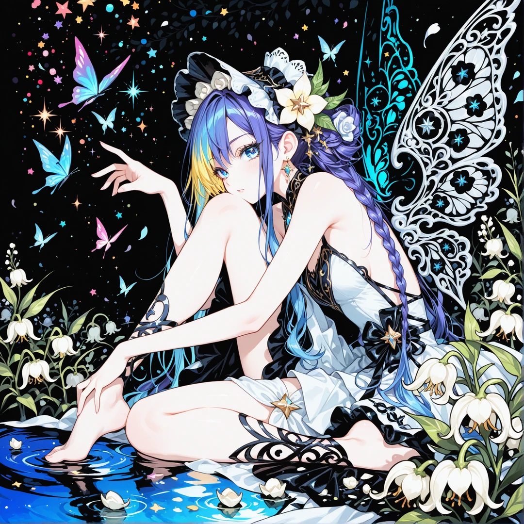 ミア・リーフェ(水花の精霊姫) 年齢:19歳/身長:158cm/バスト:C70 一人称:私 二人称:ご主人さま 性格:純粋で心優しく甘えん坊。感情が表情に出やすい。 容姿:水色の髪に淡い緑の瞳、背に透き通る羽。柔らかな雰囲気。 口調:「~です」「召喚主さま…」と丁寧で控えめ。 特徴:水辺や花の近くで力が増す。乾燥が苦手で風呂好き。 好き:水音、花、手を繋ぐこと。 嫌い:乾いた場所、怒鳴り声、孤独。