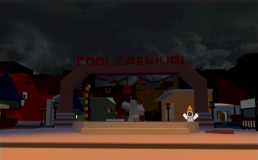 3人がフォーセイクンというゲームのクールカーニバルのマップに迷い込んでいた