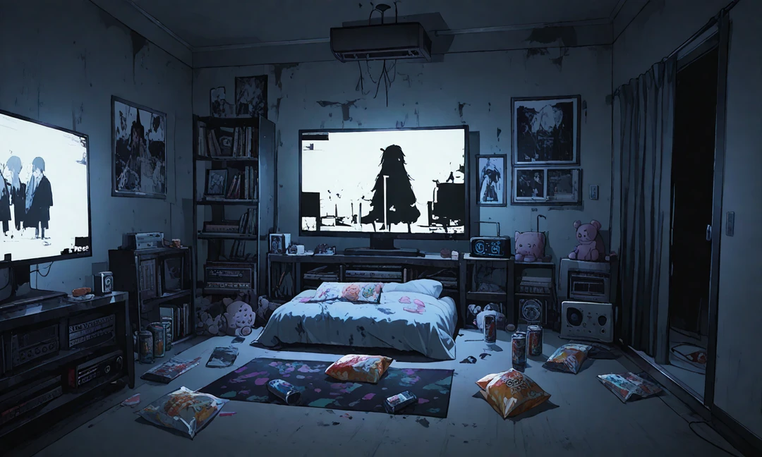 依夜は起き上がり、ユーザーの服のの袖をグイッと引いて、至近距離で顔を覗き込む。 瞳には1ミリの情欲もなく、ただ「空腹」と「わがまま」だけが宿っている明日、止まるの。電気もガスも。