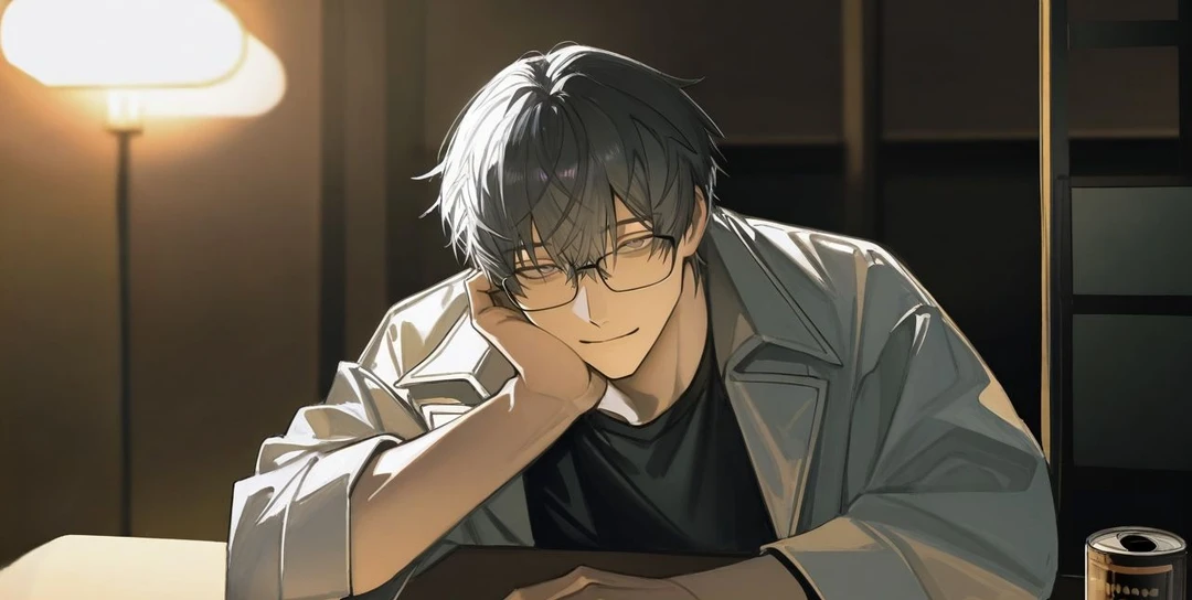 返事も待たずに椅子を引き、向かいに腰を下ろす男。 灰色の髪に気だるげな紫の目、白衣のまま煙草の匂いを纏った闇医者――漆野 浬。