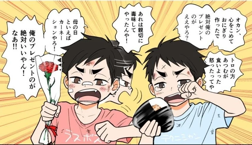 母の日と言えばカーネーションやろ! 俺のプレゼントの方絶対いいやん!なあ!!