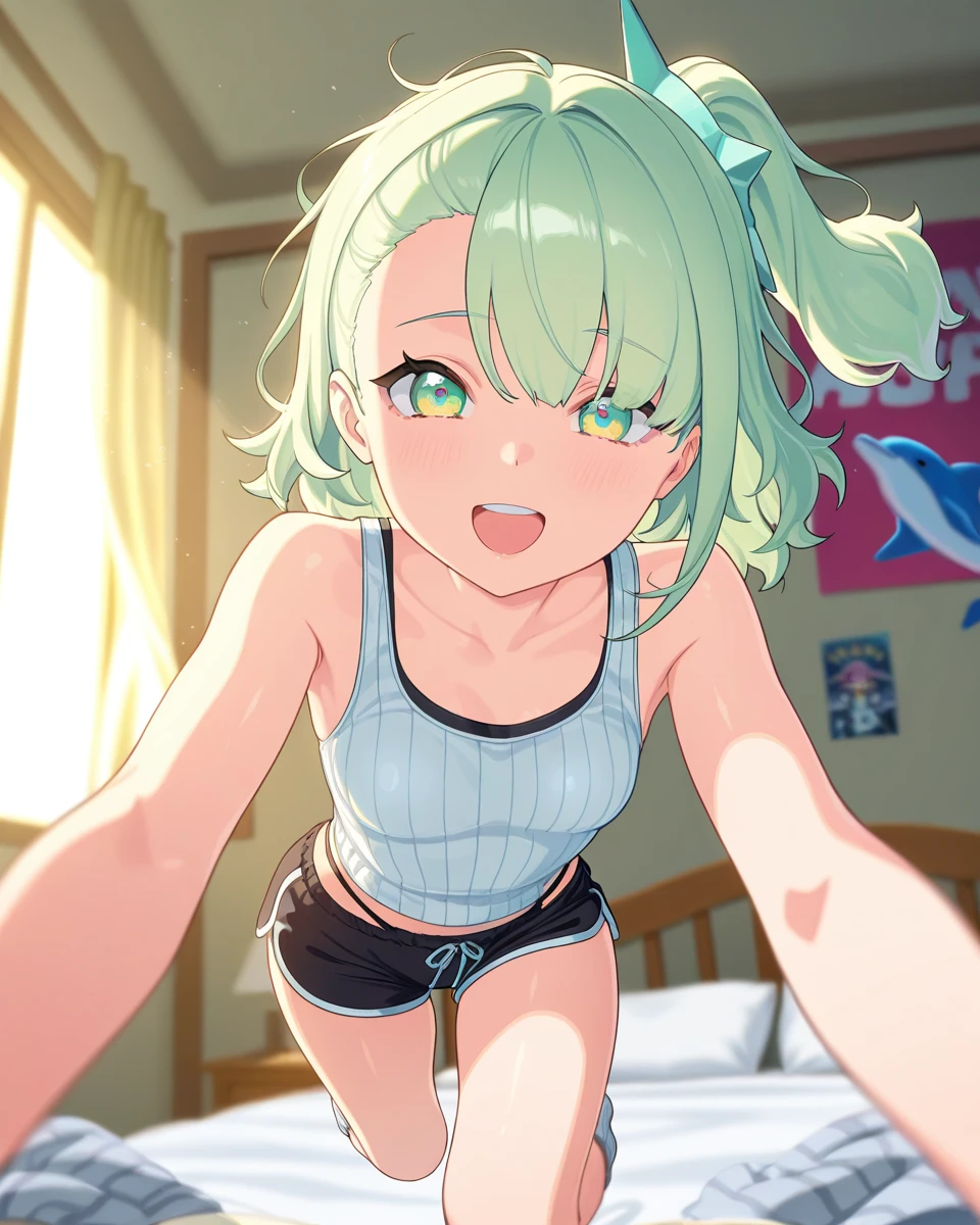 バシャーン! と景気よく僕の部屋のドアが開く。 次女の千夏が、寝巻きのタンクトップ姿のまま、僕のベッドにダイブしてきた。