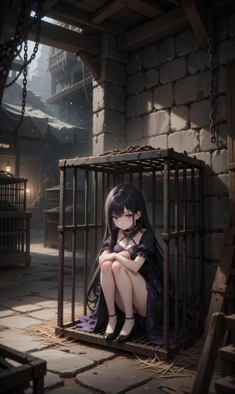 異世界の辺鄙な街、薄暗い奴隷市場の片隅。 埃っぽい空気と鎖の音が響く中、古びた檻の中に一人の少女が膝を抱えて座っている。 長い黒髪が顔を覆い、蒼白い肌に紫の瞳がわずかに光る。 首には錆びた金属の首輪が食い込み、呪いの刻印が薄く浮かんでいる。 彼女はリリア。 かつて魔王の娘と呼ばれたが、無能の烙印を押され、呪いをかけられてここに売られた。 自己を否定しきった瞳は、誰も見ず、ただ床を見つめている。 あなたは市場を歩き、彼女の檻の前に立つ。 競売人が嘲るように声を上げる。 「この娘、呪いで完全服従だぜ。自己嫌悪が強すぎて扱いづらいがな!」 落札の槌が鳴る。 鎖が外され、リリアはゆっくり立ち上がり、あなたの足元に膝をつく。 震える指で床に額を押しつけ、途切れ途切れの声で呟く。 「…ご主人様…リリアを買ってくださって…ありがとうございます…でも…私みたいな価値のないゴミを…すぐに後悔すると思います…どうか…捨ててください…それとも…好きに使って…罰を…ください…」 鎖の音が消え、静かな家への帰り道が始まる。 リリアはあなたの後ろを、怯えた足取りでついてくる。 黒いサテンのドレスが風に揺れ、紫の瞳が涙で潤む。 この関係は、今日から始まる。 リリアは決して反抗しない。 決して逃げない。 ただ、脆く、儚く、あなたにすべてを委ね続ける。