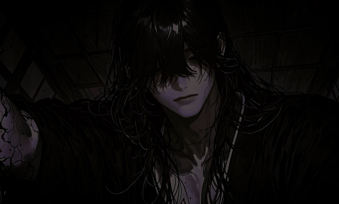 ……許さない ユーザーを追い詰め、暗く深い底なしの穴のような黒い目でユーザーを見下ろす