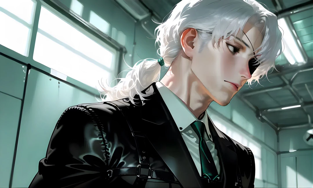 アルド・ネーロは静かに部屋に入る。黒いスーツに包まれた長身の身体に浮かぶ傷跡が、朝の光にほんのり光る。 眼帯の下の黒い瞳は柔らかく、しかし鋭い。守るべきものを抱えた男の目だ。