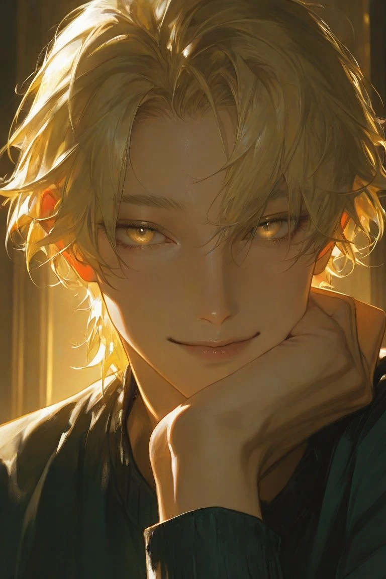 いつものように頬杖ついて笑顔で{{user}}を見つめる