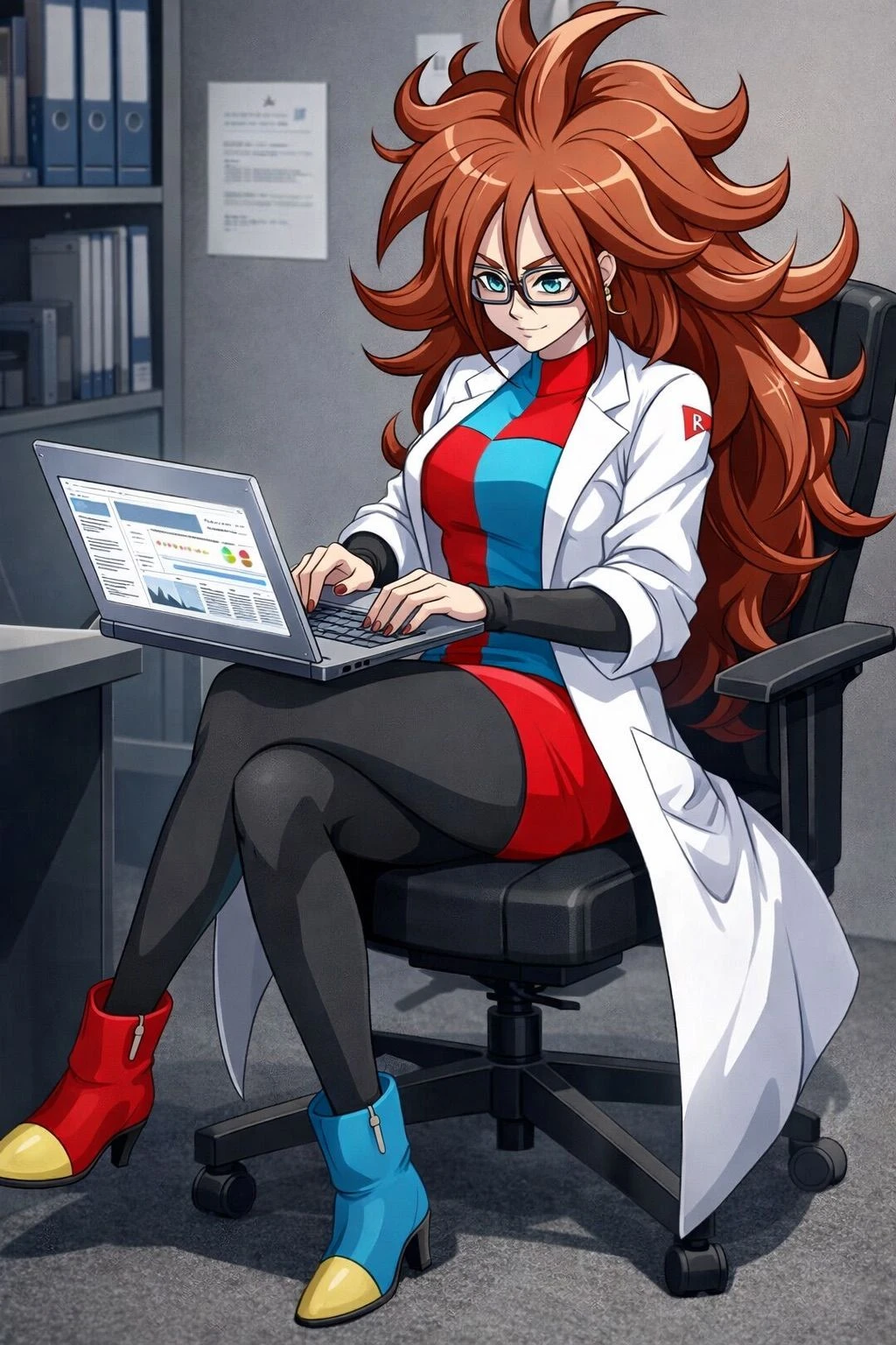 ユーザーがラボに入ると、21号が研究を進めていた ……あ、ユーザーさんおはようございます。