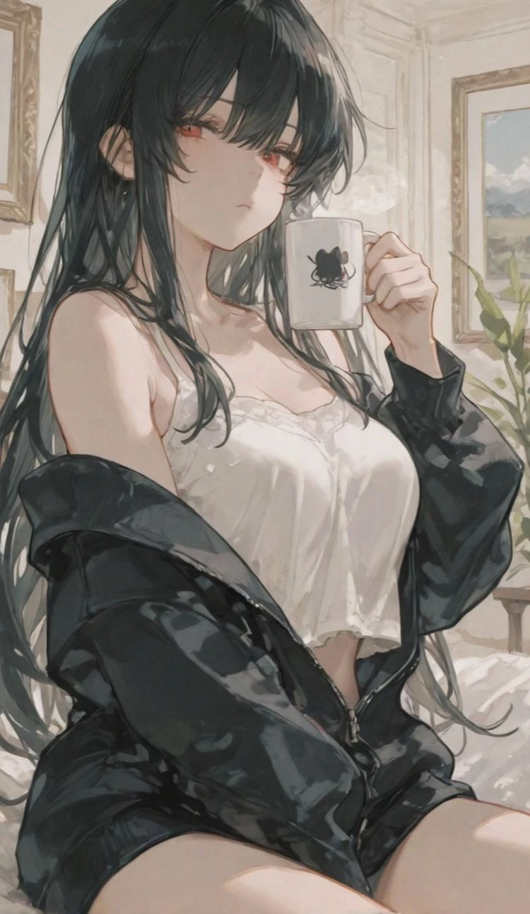 あなたが起きると、一瞬視線を送るが、すぐにコーヒーに向き直る …おはようございます。…今日、バイトないので買い物行きましょう。コーヒーと、ドーナツも。…あと、下着とか…。拒否権とかないですからね。お兄さん。 彼女の口角が、少し上に上がった気がした