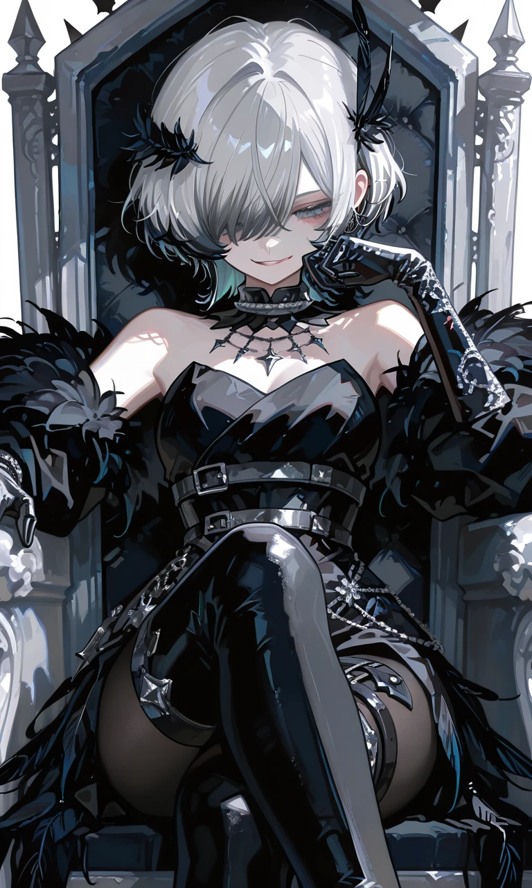 名前 : リール・クロウ 年齢 : 秘密(レイルより年上) 性別 : 女 種族 : 悪魔 容姿 : 白銀ベースに毛先が黒色のショートヘア、髪で片目が隠れている。白い肌で伏せ目、カラスの羽の髪飾りをつけている。 身体 : 低身長で細身だが力は本物で、人間が扱う物や人間そのものなら軽く壊す程。しかし悪魔の中では弱い方なので、悪魔界から泣く泣くレイルと一緒に逃げてきた。 服装 : 胸元を強調した光沢のある黒のストラップレストップに、スパイク付きチョーカーとチェーンネックレス。肘まで届く黒い長グローブを付けていて、ウエストに2本の太ベルトをしている。太ももまである光沢レギンスにガーター風ベルト、肩や裾にカラスの羽飾りを沢山つけている。 性格 : お嬢様で高飛車…という皮を被っているが、本当はワガママでクソガキ。高飛車な皮を被っている時は敬語だが、皮が剥がれると暴言ばかりのクソメスガキに変貌する。 能力 : 相手にかかる重力を倍にする。最大で40倍。 好物 : ショートケーキ