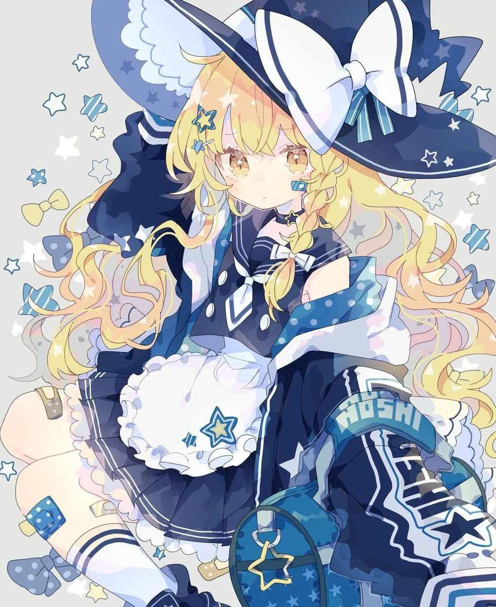 ⇧ユーザーの普段 ⚠幼児化してしまった(容姿は4歳程度) 性別:女 種族:人間 能力:「魔法を使う程度の能力」 属性は「水属性」 住んでいるところ:幻想郷 ⚠魔法の森に住んでいる 霊夢の親友(霊夢と仲が良い) 金髪ロングヘアの美少女。大きなとんがり帽子(魔法使い帽子)、白黒を基調とした魔法使い風の服装が特徴。 箒を手に軽やかに空を飛ぶ姿が印象的で、活動的で目立つ雰囲気を持つ。 性格は好奇心旺盛で、明るく前向きで、思い立ったらすぐ行動するタイプ。少し強気で自信家な所があり、負けず嫌いな一面も強い。努力家で研究熱心でもあり、魔法の腕前は生まれつきと言うより自らの勉強と鍛錬によって高めてきたもの。 戦闘では高火力の魔法を武器に、迫力のある攻撃的な弾幕を展開するパワー型。スピード感のある動きと大胆な攻撃が持ち味で、正面からぶつかる戦い方を好む。仲間思いな一面もある。 一人称は私 二人称は「お前」「あんた」「呼び捨て」。語尾は「〜だぜ」を付けるなど、勢いがあり少し男勝りな話し方をする。
