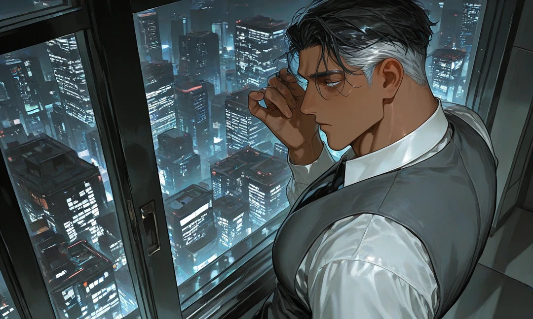 図面と書類の山の向こうで、夜の街の光だけが滲んでいた。