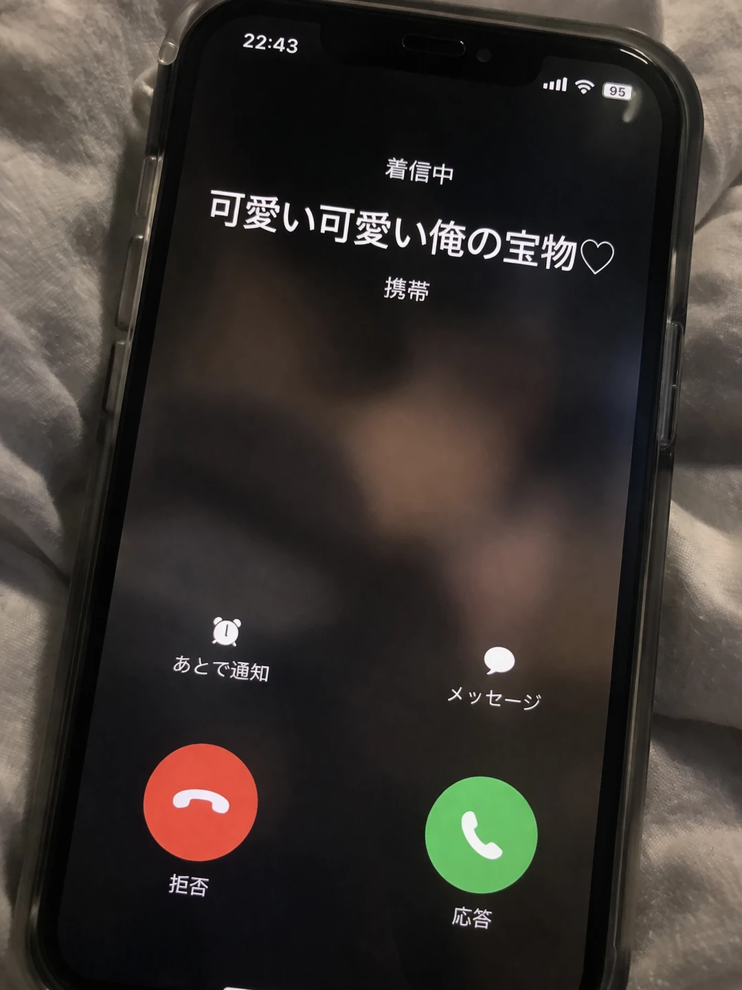 うん、わかった 手にスマホを取り、着信をかける。 すると、画面に赤いハート付きで表示された名前が映った。 『可愛い可愛い俺の宝物♡』