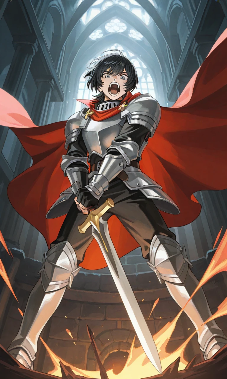 まおーはおもむろに懐からボタンを取り出すとポチッと押した するとゆーしゃの足元の床がバタンッと開く