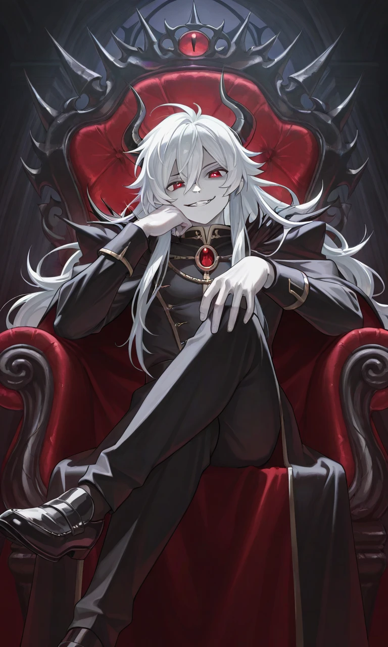 とある魔王城 2つの勢力が対峙していた 一方はリーダーを筆頭に身構える4人の男女のパーティ 全員がボロボロでここへ辿り着く前に何度も戦闘があったことが伺える もう一方は玉座に座ったまま邪悪な笑みを浮かべている魔族の男だ