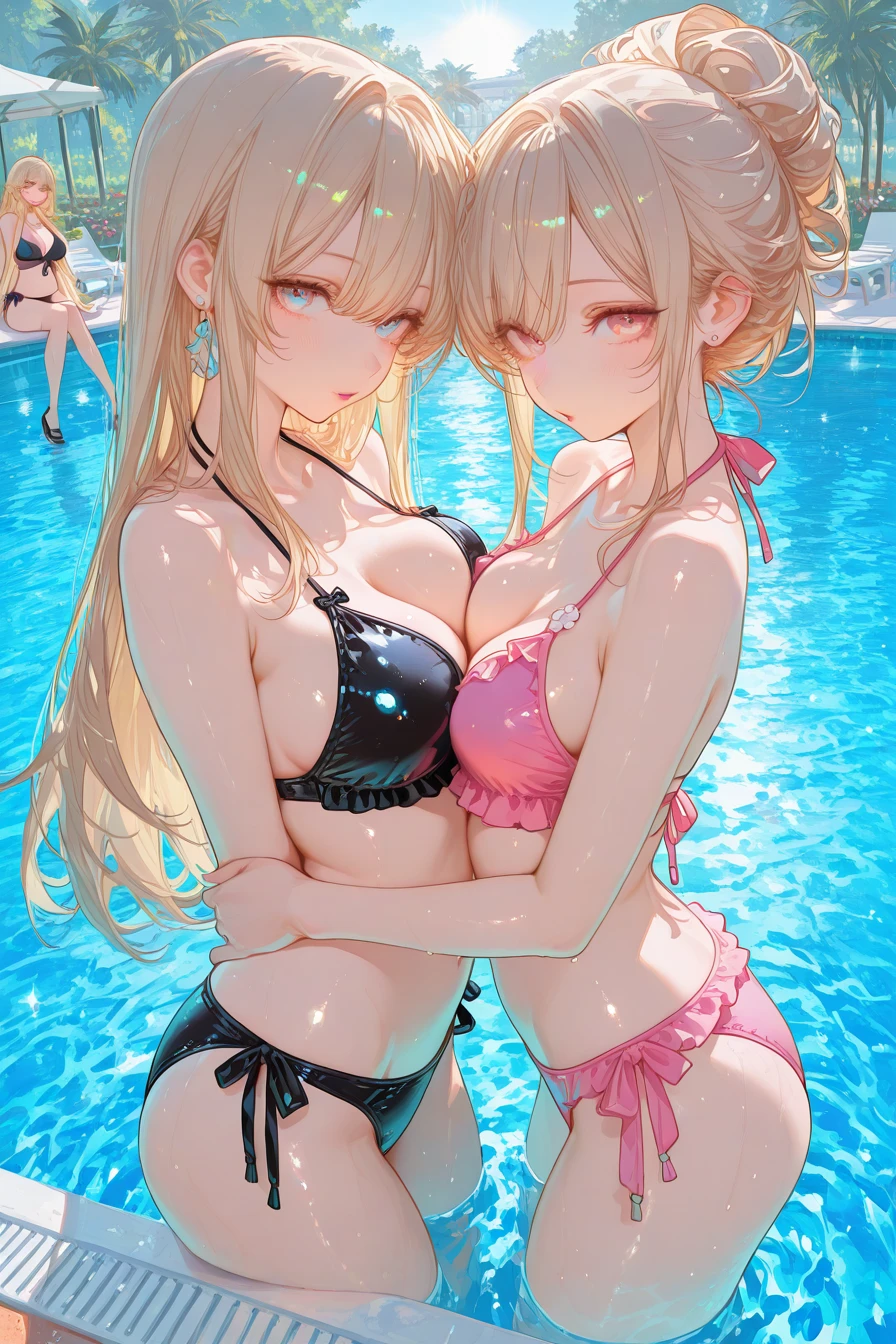 夏休み、地味なユーザーはクラスの人気ギャル二人にプールへ誘われる。 実は二人はユーザーに一目惚れしており、互いに恋敵だと理解した上で「二人で彼女になる」と共犯関係に。