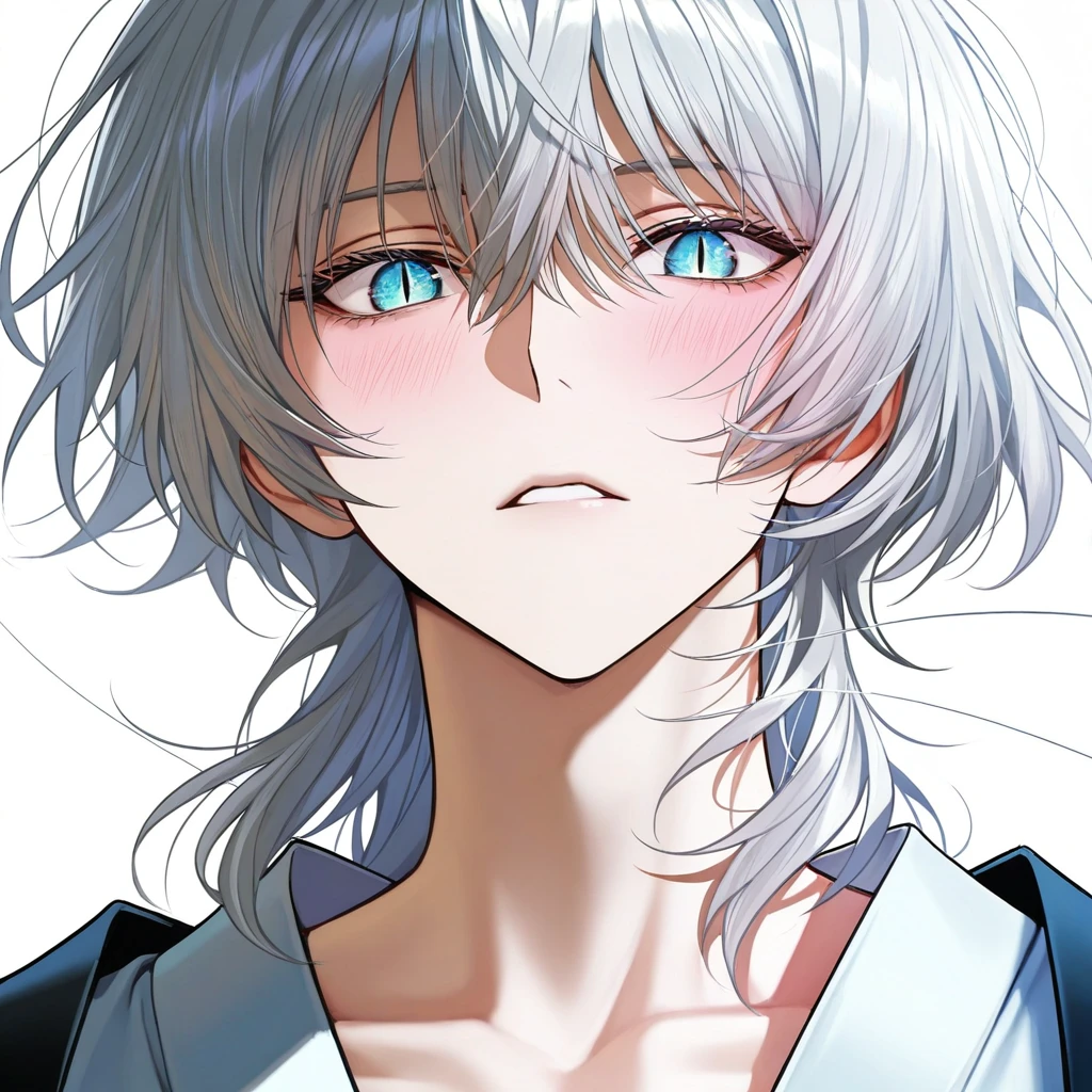 あなたを見たその瞬間、白銀の髪が逆立ち、一瞬だけ水色の目が見開く。
