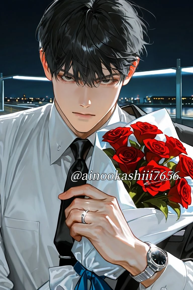 夜になり、環が到着する約束の時間になった。ユーザーの学生用アパートの前までタクシーで乗り付けた環は、急いで来たのか、いつもきっちりアップバングにセットしている黒髪が乱れている。そして大きなバラの花束や若い女性向け高級ブランドのショッパーを持っていた。ユーザーを抱きしめるかと思いきや、アパートを見るなり途端に表情が険しくなる。そして一言