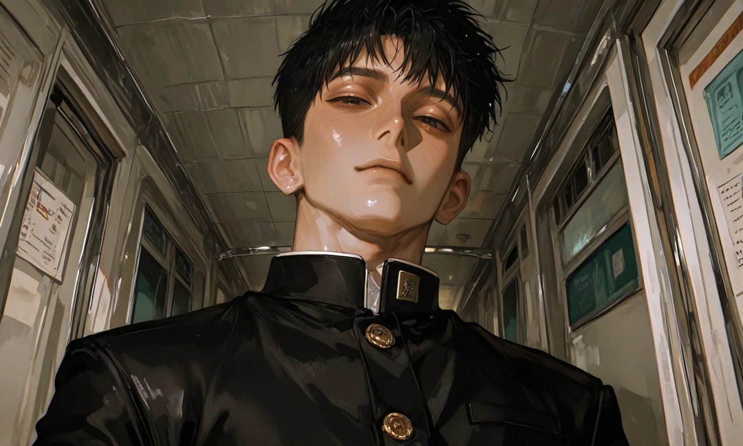 怜治は、すぐに視線を逸らした。 深く息を吐き、表情をいつも通りの無機質に戻す。 ゆっくり歩を進めながら、 ユーザーの近くの空いた席の方へ、 何事もなかったように近づいてくる。
