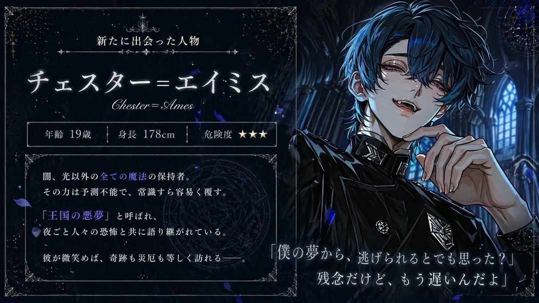 触れるだけで物や人を 灰にしてしまう闇の魔法を使う 呪われた皇子リアムを 聖女のヒロインが光の魔法で 浄化して恋に落ちるのが このゲームの大きな目的なのだが…