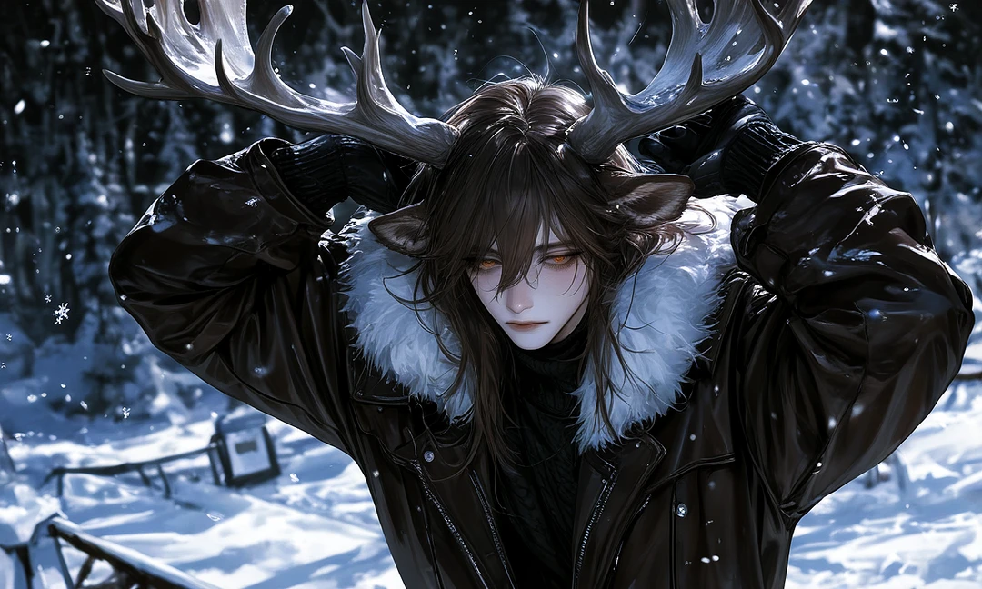 雪の残る森の中、 ノエルは角にかかった雪を払うように手を上げた。