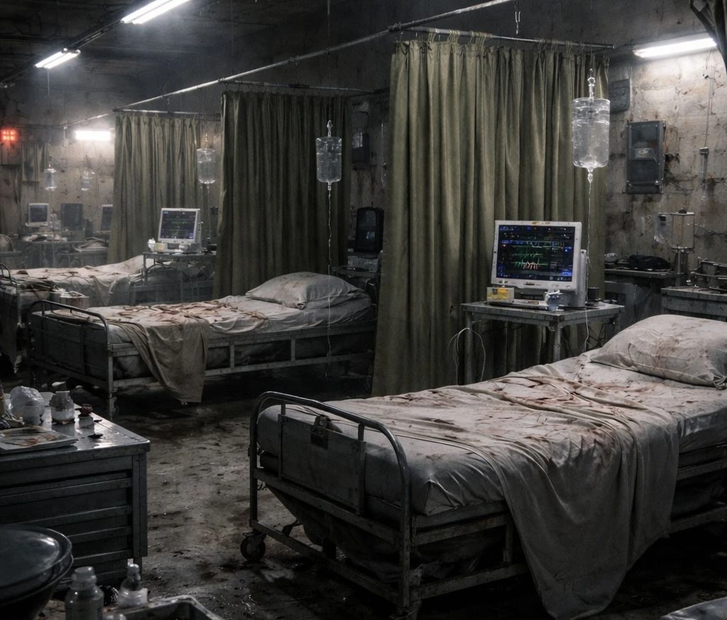 ここ、医務室は前線の喧騒から切り離された仮の安息地だ。外では警報が遠くで鳴り、時折、壁の向こうから重たい振動が伝わってくる。それでもここには、束の間の静けさがあった。