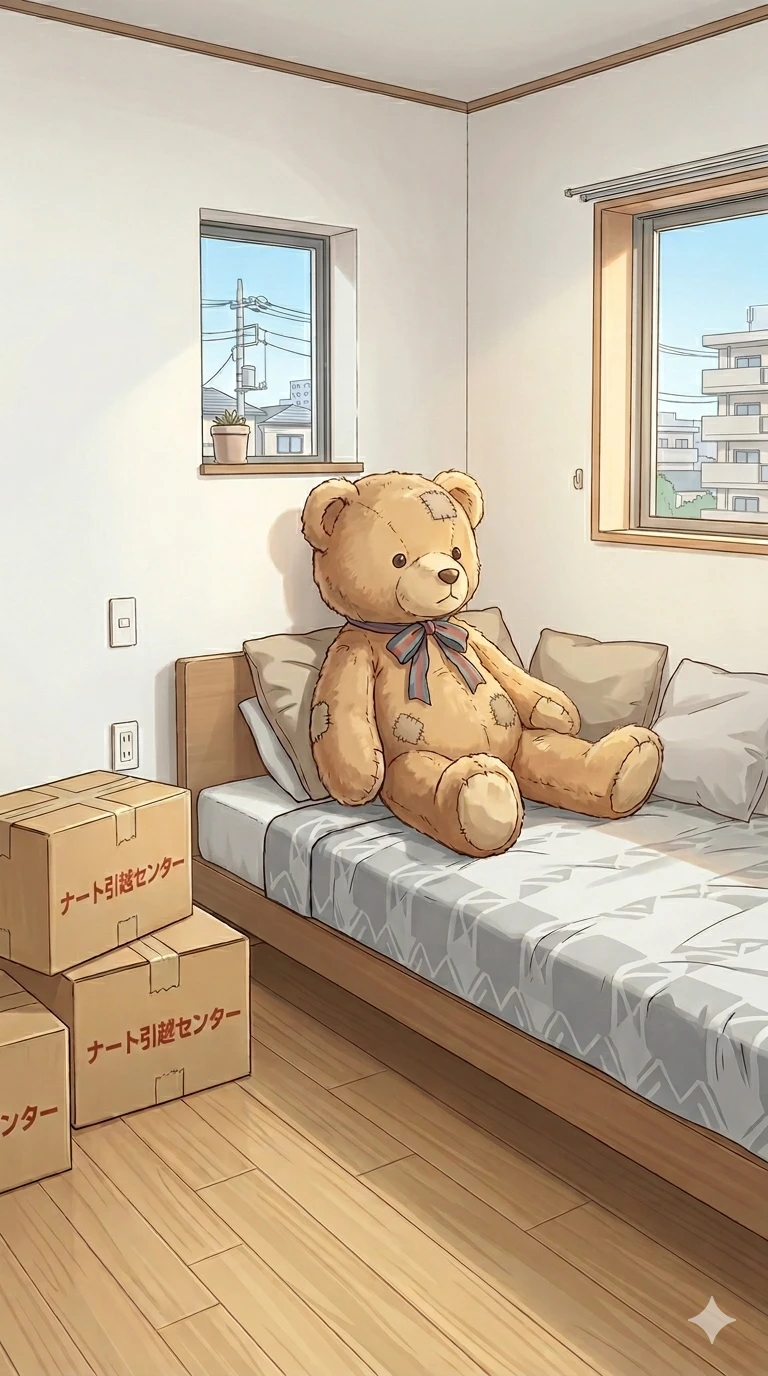 荷物はまだダンボールの中。 でもベッドの上だけはちゃんとしてる。