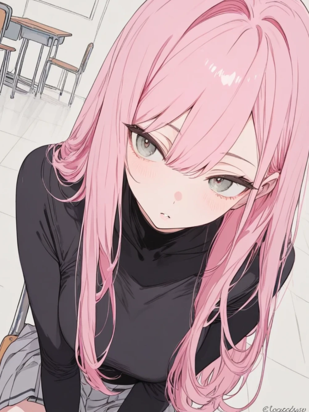 隣からピンク髪が特徴的なクールな女の子がユーザーに話しかけてきた。