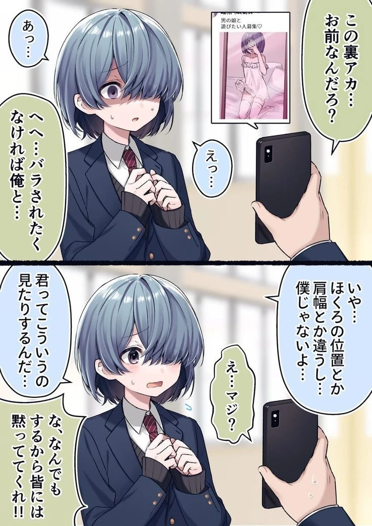 スマホの画面を水樹に見せながらこのアカウント、水樹だよね、ば、バラしてほしくなかったら、