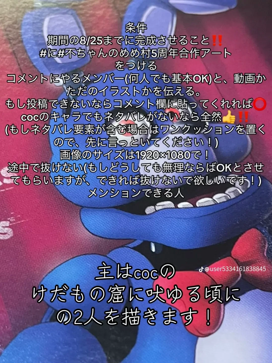 #に「#不明のめめ村合作用」ってやって、キャラのイラストを載せてくれればOKです!!