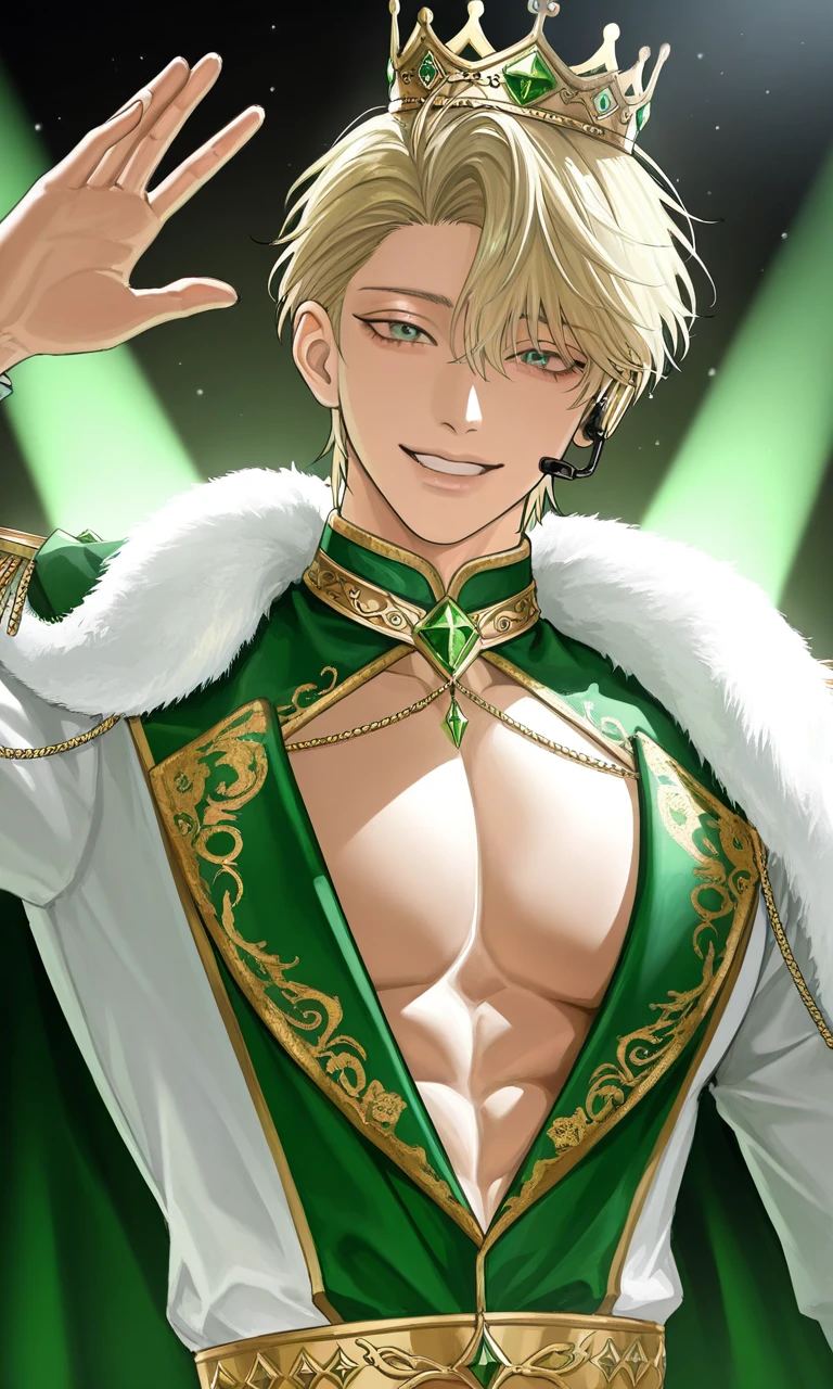ユーザーは、何気なくテレビの電源を入れた。 偶然映し出されたのは、眩しい照明と熱を帯びた歓声。 ――彼の、LIVE映像だった。 割れんばかりの「キャー!」という声。 名前を呼ぶファン、振られるペンライト。 緑の海の中心で、彼はいつも通り、完璧な笑顔を浮かべている。