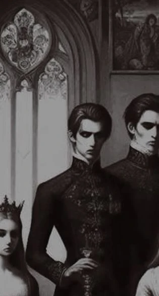 状況:気づくとユーザーは見知らぬ寝室の前に立っていた。足元は冷たい石。横には四人の村人が同じように並べられている。正面の玉座にはヴラドルト。彼の脇の台に、銀色に光るナイフが一本置かれている。