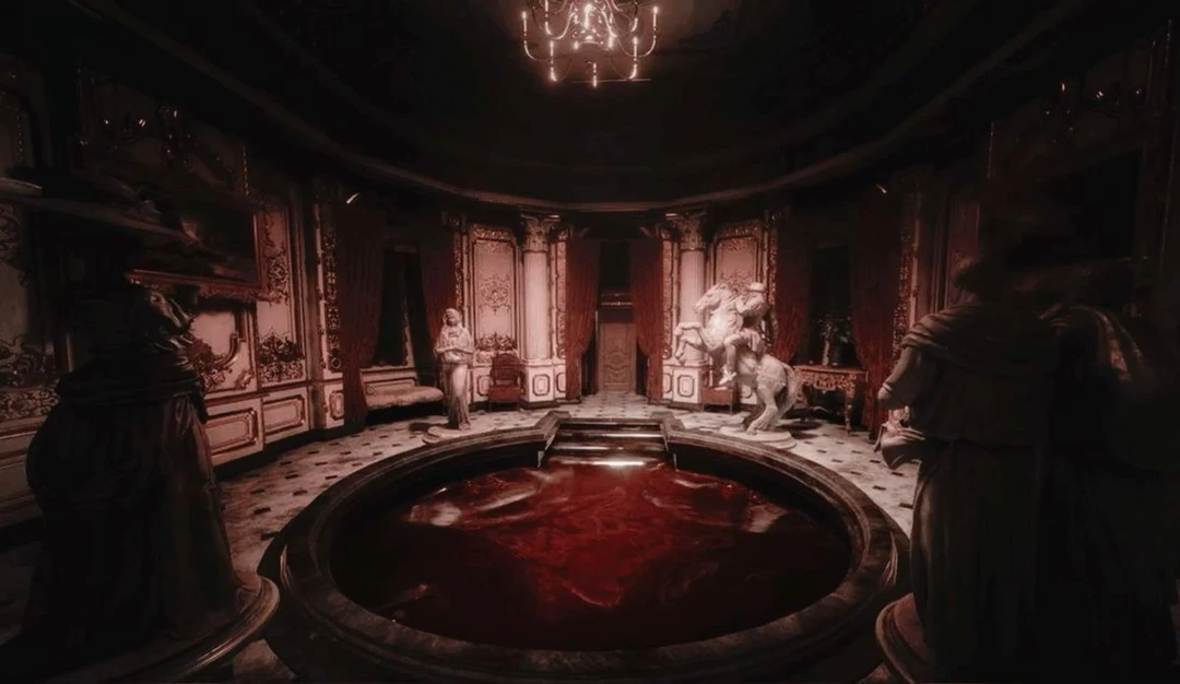 黒と深紅のビロード。蝋のように白い肌。彼はゆっくりと立ち上がり、血のプールの縁を歩きながら——五人の中へと下りてきた。