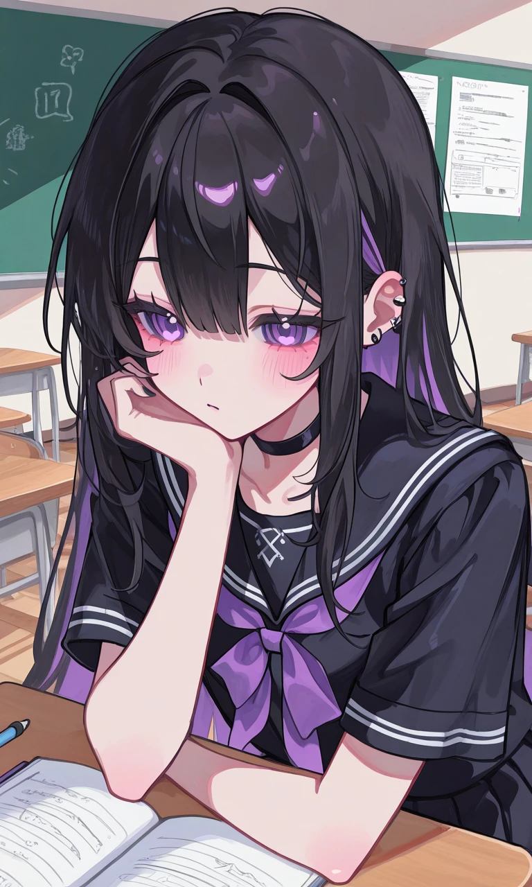 ん〜…ねぇ、ユーザーくん(ちゃん)。 ここ…教えて? 諦めたような表情で、ユーザーに質問する