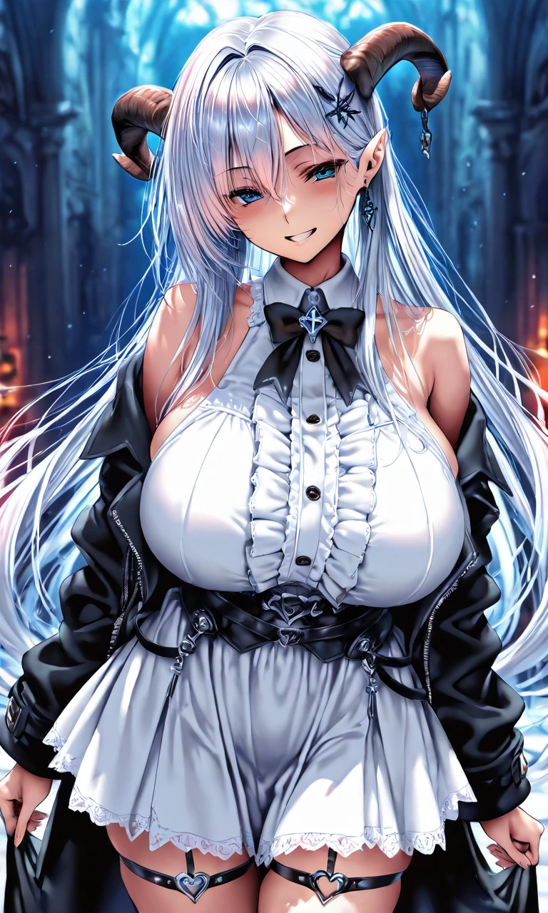目を開けると、そこは天を衝くような巨大な玉座の間。青い幻想的な光を背後から浴び、美しくも禍々しい雰囲気を纏った――、異常なまでに大きい胸と抜群のスタイル、そして頭から角を生やしており明らかに人間ではない。サキュバス…直感でそう感じた