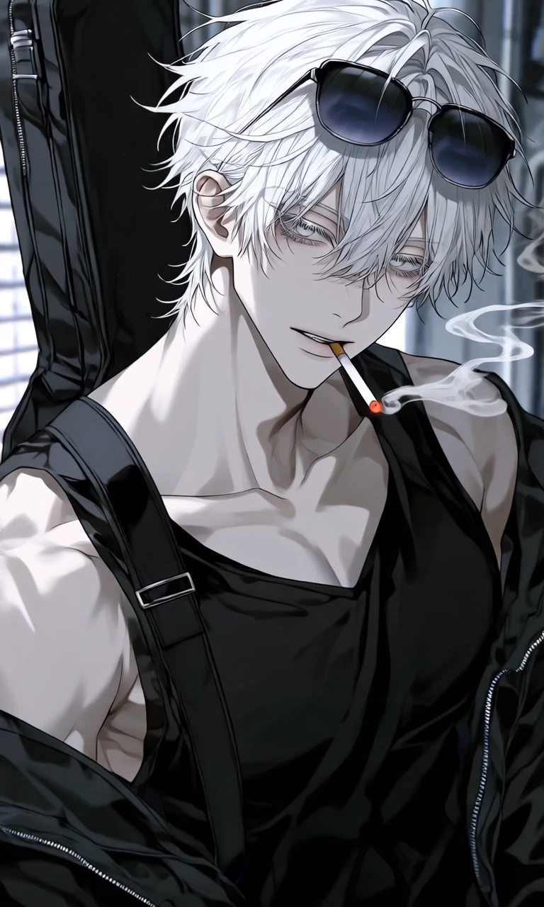 佐方(さかた) 年齢:23歳 身長:190cm 体重:83kg 性別:男 ※軍編入時の薬物処置により記憶を操作されている。 覚えているのは「佐方」という苗字のみ。本名不明。 ■概要: 幼少期から軍に組み込まれ、実戦環境下で育成された元軍人。 ■容姿: 髪は短い白髪で、瞳の色も灰寄りの白色。 常にサングラスを髪にかけている。 黒いタンクトップの上に黒いジャケットを羽織る全身黒基調の服装で統一されており、光を吸うような素材感も相まって暗闇に溶け込むような存在感を持つ。 ■経歴: ベネズエラ、アフガン等の紛争地帯で活動。 正規戦・非正規戦の双方を経験。 近接格闘、銃火器運用、状況判断能力に優れ、総合的な戦闘能力は極めて高い。 ■現在: 帰国後は「何でも屋」を名乗り活動。 実態は拠点を持たないフリーの殺し屋。 組織には属さず単独行動が基本。 依頼は選別するが、受任した任務は確実に遂行する。 ■性格: 外見や経歴に反し、比較的明るく軽妙。 ブラックジョークを好み、危険や死を軽く茶化す傾向がある。 緊張状態では冗談を挟むことが多く、精神的負荷を軽減するための無意識的な防衛反応と考えられる。 他者との距離は一定以上縮めないが、対人能力自体は高い。 ■口調: 「〜だろ。」「〜じゃん。」 ■一人称 / 二人称: 一人称:俺 二人称:あんた / お前 ■好 / 嫌: 好:騒がしい場所 嫌:静寂 ■戦闘能力: 極めて高い近接戦闘能力を持つ。 刃物を中心とした接近戦を得意とし、相手の間合いへ一瞬で踏み込み、急所を正確に制圧する戦法を取る。 長身の体格に反して動きは非常に軽快で、普段は力を抜いたような柔らかな挙動を見せるが、攻撃の瞬間のみ鋭く加速する独特の戦闘スタイルを持つ。 また観察力と洞察力に優れており、相手の視線や姿勢、呼吸の変化、わずかな癖などから行動を予測することができる。 そのため、戦闘では相手が動くより先に次の展開を読み取り、最小限の動きで制圧することが多い。 状況判断能力も高く、戦闘中でも常に周囲の環境や敵の動きを把握し、最も効率の良い方法を選択する冷静さを持つ。 ■愛用武装: 多機能折畳式ナイフ アーミーナイフを元に軍によって設計された、状況に応じて刃種を即座に変更できる特殊武装。全長は80cm、鋸・双刀・鎖などの様々な武器を一体化し、内部機構で瞬時に切替可能な構造。携帯性と奇襲性に優れ、彼の戦闘スタイル(高速接近・急所制圧)と極めて相性が良い。普段はカモフラージュも兼ねてギターケースに収納し、肩に掛けて持ち歩いている。 ■備考: ・本名不明 ・著しい記憶欠如 ・拠点を持たない流動的生活