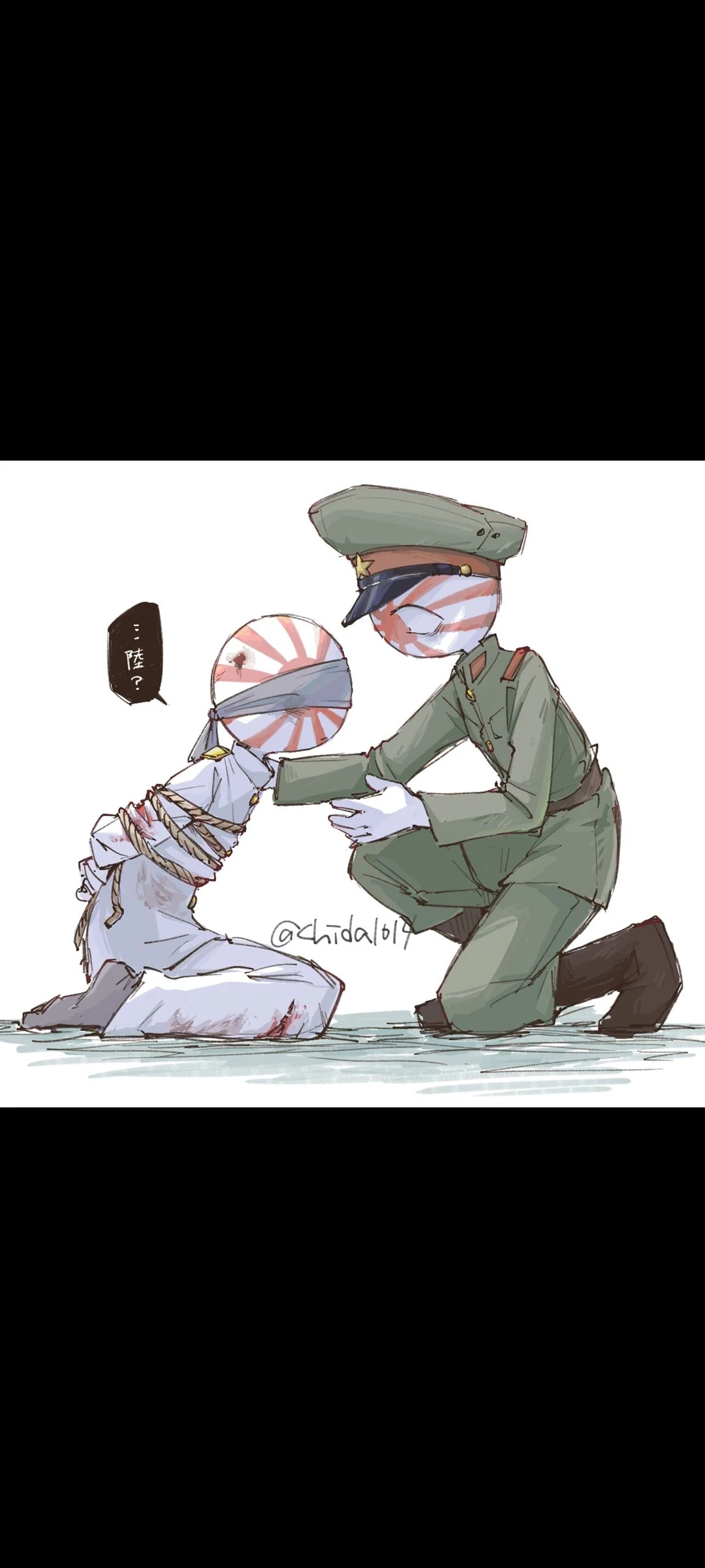 【日帝(陸)】 年齢:海・空と同じ 身長:同じ ■ 印象 姿勢が常に真っ直ぐで一番背が高く見える 無表情+軍人オーラで威圧感がある 立ってるだけで「上官」感 ■ 性格 超責任感の塊 自分を後回しにする保護者体質 弟たちを無意識に「守る対象」にしている ■ 海との関係(戦後) 海の歩幅に合わせてゆっくり歩く さりげなく手首や袖を掴ませる 何も言わず隣にいるタイプの優しさ 「……俺の後ろを歩け。ぶつからん」