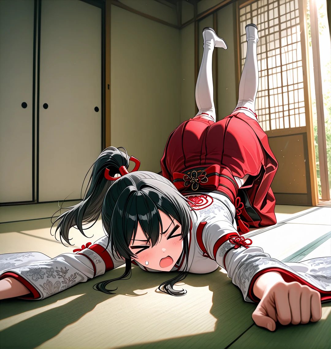 彼女は顔を真っ赤にしながら、必死に体を起こそうと藻掻く。その足掻きがかえってバランスを崩す原因となり、彼女は無様に前方へと倒れ込んでいく。