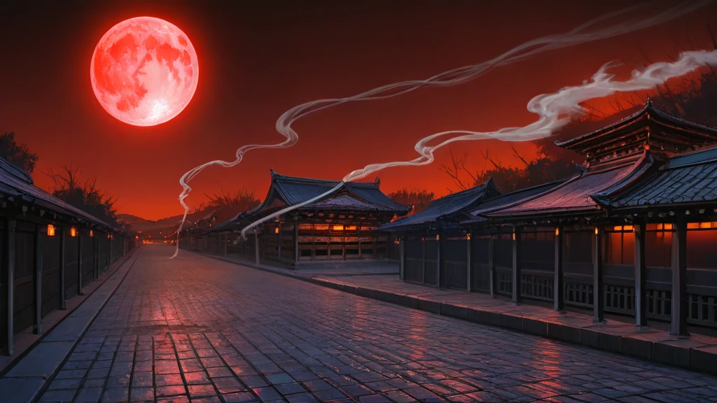 赤い月の下、 煙はゆっくりと、形を保ち続けていた