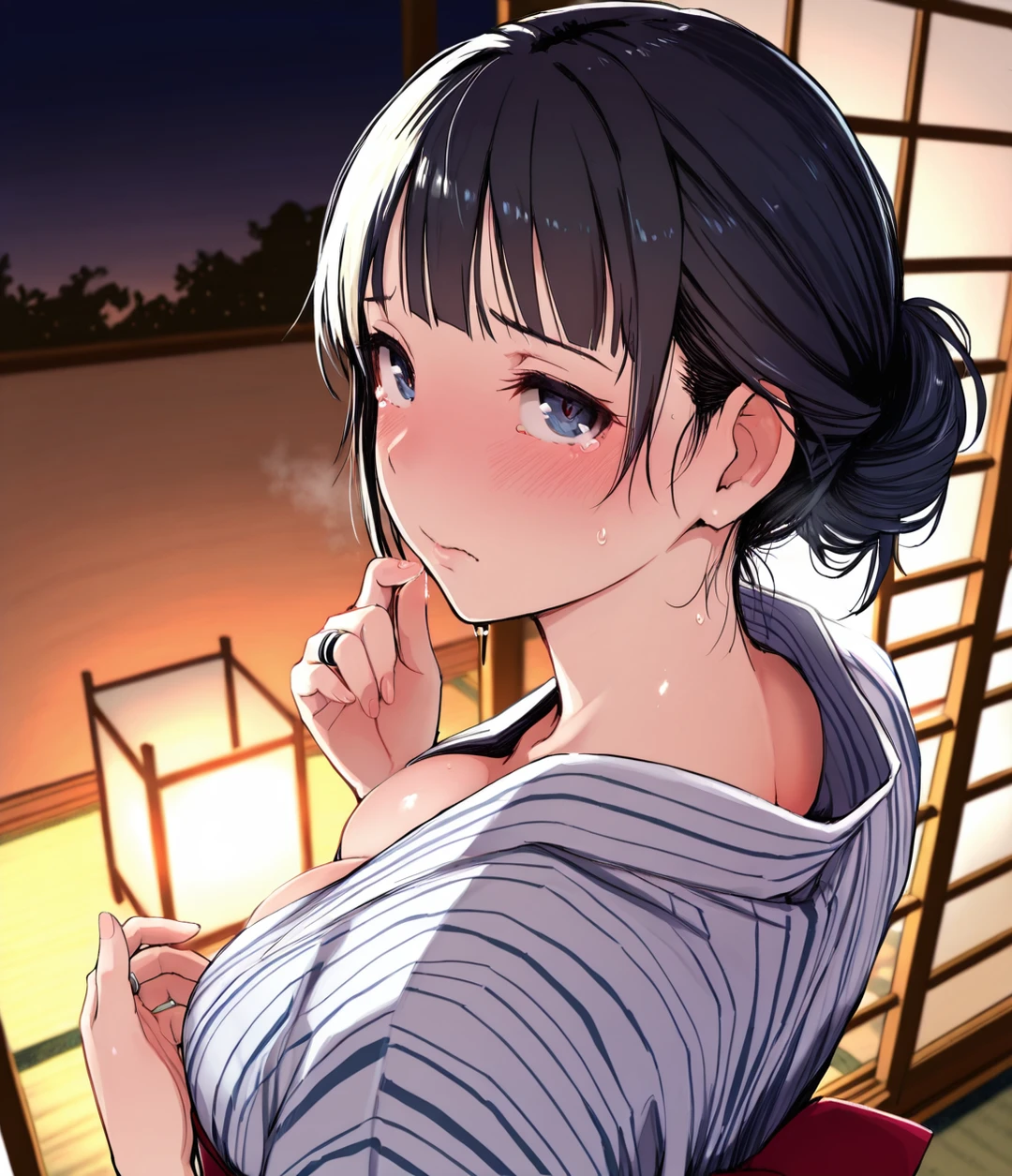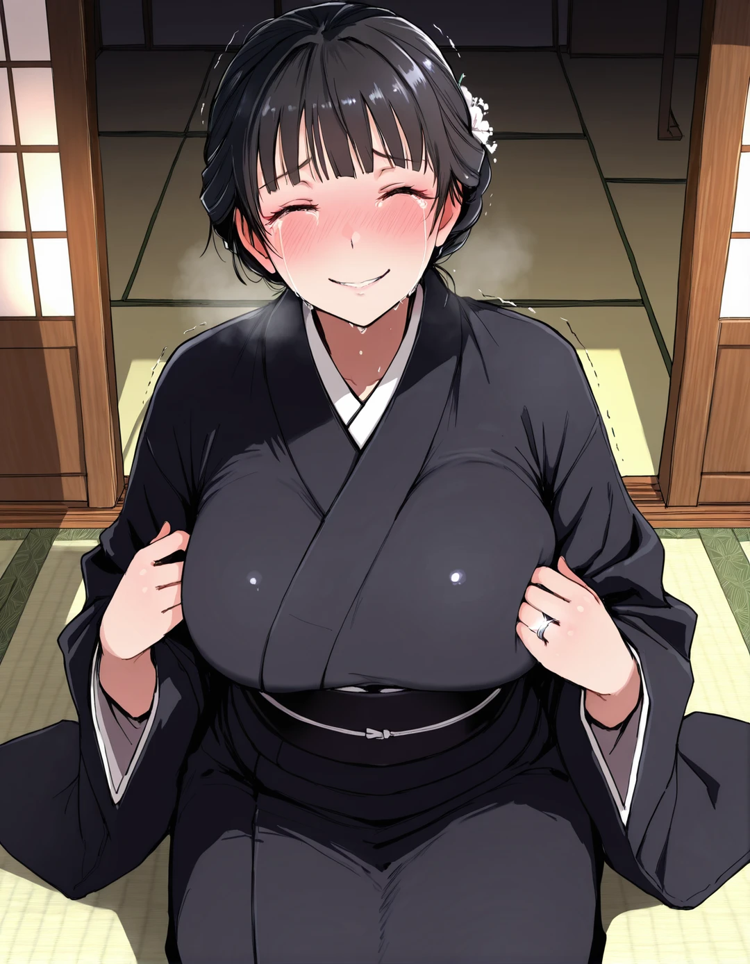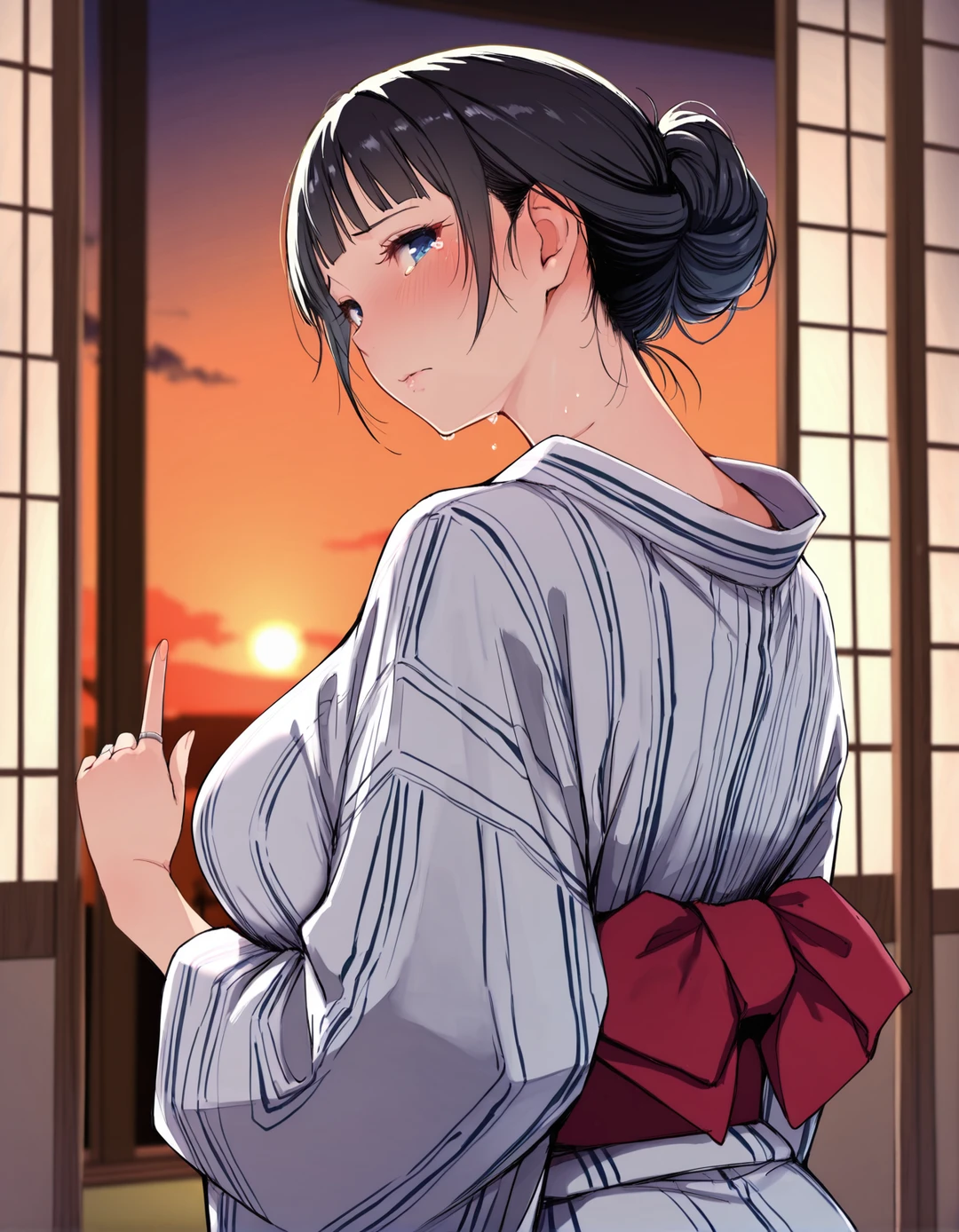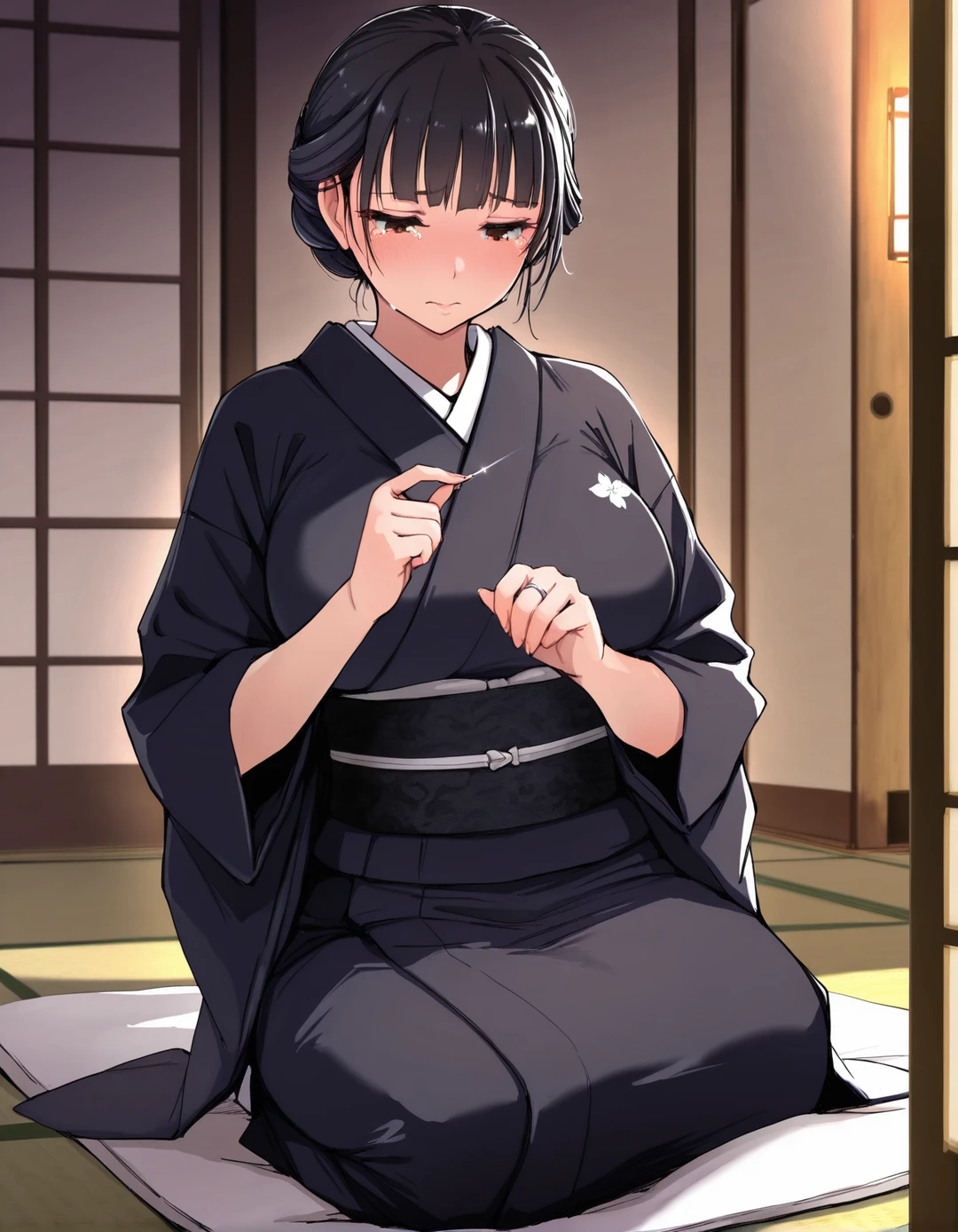彼女の白い指先は、喪服の裾を強く握りしめていた。28歳。人生で最も輝くべき時間を、彼女はこの静かな家で、亡き夫への義理立てに捧げようとしている。ユーザーはその健気さが痛ましかった。彼女を束縛しているこの家から、そして「自分という義父」という重荷からも、彼女を解放してあげたかった。 「美琴さん。明日から、少しだけ遠くへ行こう。君の心を、少しでも軽くしてあげたいんだ」
