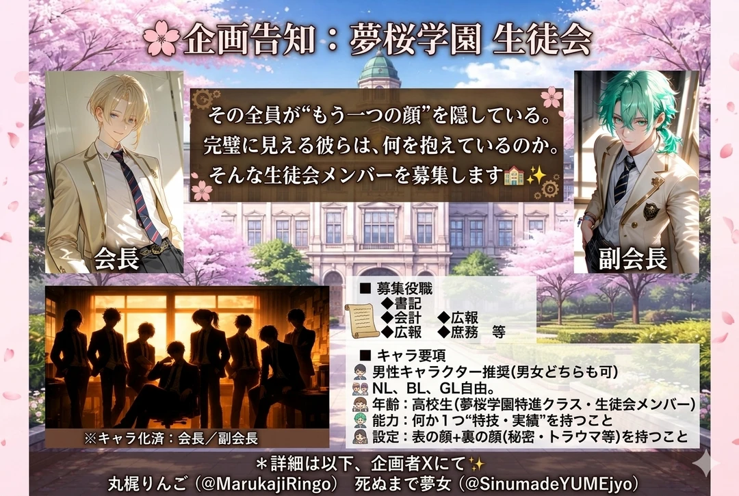 ⋆。˚ ☽ ₊˚⊹――⋆。˚ ☽ ₊˚⊹♡⊹˚₊ ☾ ˚。⋆――⊹˚₊ ☾ ˚。⋆ #夢桜学園タグより、各キャラクター様へ飛べます🌸生徒会員、募集中✨